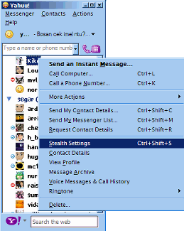 Yahoo! Messenger version 5, 6, 7: to check if people are in invisible mode, inform you whether someone in buddy list are in invisible status, detect person who is in appear offline state, all using YM without use of any other program or software. This page explain how to know a friend is offline, online, invisible, busy status (maybe), out of office, etc. Crack, hack, booter, and the such things are not needed here. Cracks, hacks, booters are all not useful in determining the true / actual status. To determine the real status, just follow the step by step instructions. Each instruction is provided with a screen shot (or is it screenshot). Without detect but can also. Softwares or patch is not necessary at all. Yahoo! Messenger seeing person in invisible modes, informing, and informs you whether somebody on buddies listing are in invisible / appear offline state, detecting person which is in appearing offline / disconnected states, not connected, all only using YM without using any others programs or softwares, the detection is very easy. There are online checker program for Yahoo Messenger. Remotely, in remote, these pages explains how knowing friends are offline, online, invisible, busy status (maybe), out of office, etc. Cracking, hacking, booting, and the such things are not needed here. Crackz, hackz, tricks, are all not useful to determine the real / updated status. To determine the the real status, just follow the step by step instructions. Software or patches is not required at all. Invisible ink? Where?